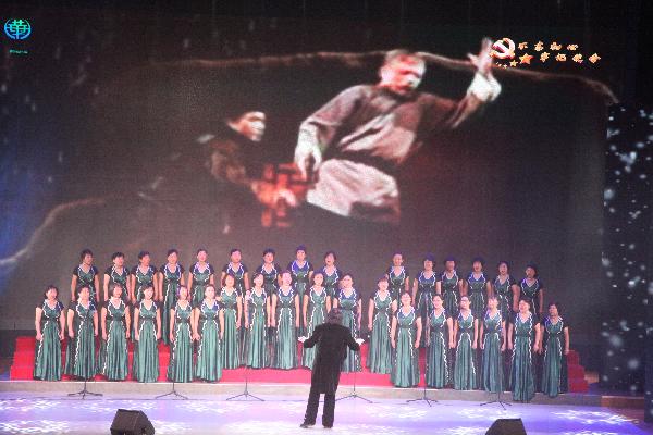随后,两首混声合唱《我的祖国》、《地道战》把红色激情弥漫开来,一次又一次撞击着观众的心灵