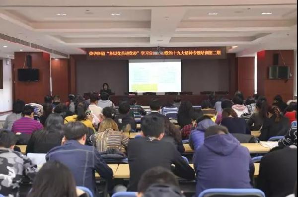为深入学习宣传贯彻好党的十九大精神,将“基层党员进党校”轮训工作落到实处,提升机关、社区党员干部思想政治意识,把思想和行动统一到实际工作中,为落实“三区一门户”、“四区一阵地”的定位服好务。12月26日下午,荣华街道组织开展“基层党员进党校”学习宣传贯彻党的十九大精神第二期专题培训,邀请到了北京市委党校决策咨询部主任赵莉教授,以《贯彻十九大精神推动新时代首都新发展》为题进行授课。街道纪工委书记刘彦梅同志主持会议,机关、社区党支部书记、预备党员、发展对象、积极分子等90余人参加了培训。